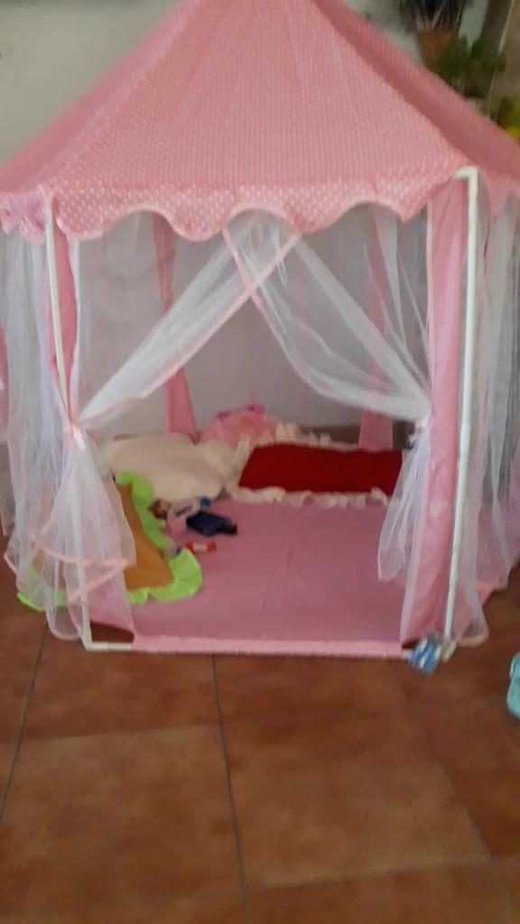 Six Angle Pink Princess Castle Gauze Stan House Girl Children Large Indoor Outdoor Toy Game