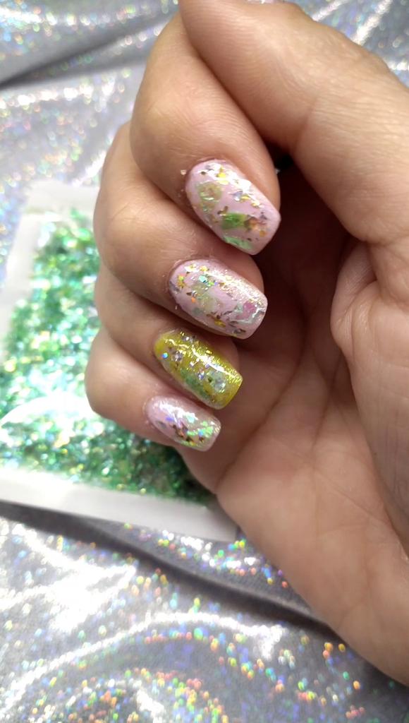 Tak krásné a dokonalé pro mé nehty. Třpytí se v různých barvách, jak můžete vidět na fotce, a je super snadné s ním pracovat. Myslím, že se velmi hodí i na další ruční práce, nejen na nehtový design. Navíc to přišlo dřív, než se čekalo 🫶🏼