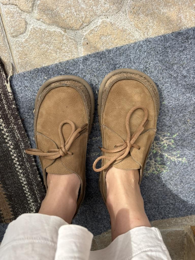 Johnature Ručně vyráběná pravá kůže ploché dámské boty s kulatou špičkou mělká měkká podrážka mokasíny retro jednobarevné boty