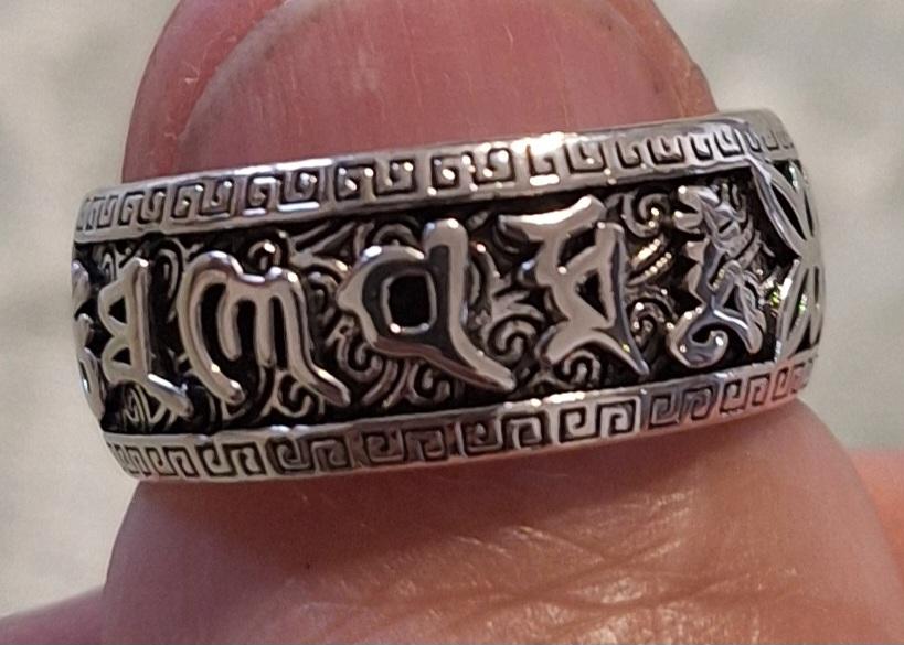 S925 Mincovní stříbro Mantra Svatý Náboženský prsten Thajské stříbro Šestiznakové Mantra Otevírací válec Šperky s nastavitelným prstenem