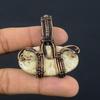 Natural Hand Carved Elephant Carving Stone Copper Wire Wrap Pendant 2.76" j2E08