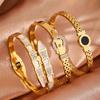 ALLYES Trendy Geometric Stainless Steel Chunky Bangles for Women Inlaid Rhinestone Lion Wrist Bracelets Waterproof Jewelry
