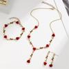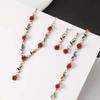 Sada obsahuje krásný růžový náhrdelník, odpovídající náramek a pár náušnic, to vše zdobené jemnými červenými růžemi, které dodají vašemu outfitu jedinečný nádech..