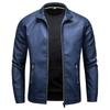Men's Stand Collar Leather Coat Solid Color Washed Retro Pu Leather Coat Large Size Motorcycle Leather Jacket for Men