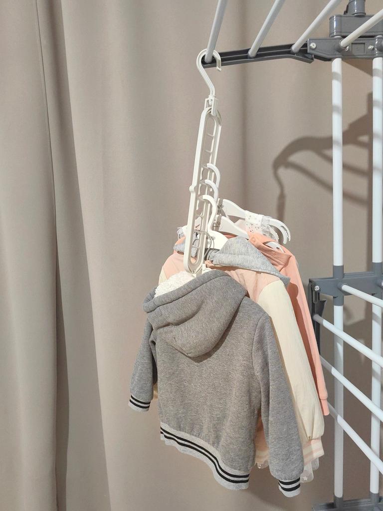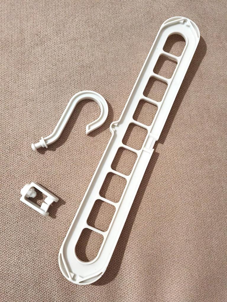 Výsuvný skládací věšák . Umožňuje ergonomické a pohodlné uložení oděvů. Pokud máte málo místa ve skříni, ale hodně prádla, pak je to pro vás. Věšák pojme 9 věšáků. Dobře drží na tričkách. Doporučuji.