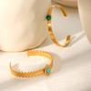 French Titanium Steel Inlaid Malachite White Shell Bracelet Chic Style Geometric Round Acrylic Bracelet Women's Plated 18k Gold
