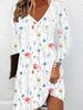 Spring Autumn Women Long Sleeve V Neck Split Flower Printed One Piece Dress