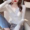 Dámský úzký krátký pletený kardigan s dlouhým rukávem, jaro 2024 nový styl, jednoradové zapínání, čistá touha s topem na ramínka