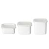 Noda Enamel Úložná nádoba Smalt Odolná vůči teplu Čtvercová Obdélníková Hluboká Velikost S M L Sada 3 velikostí s těsnicím víkem Viditelný obsah Bílá série Vyrobeno v
