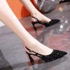 Francouzské niche vysoké podpatky dámské 2025 léto nové taška hlava prázdná flitry vílí styl špičatá hlava tenký podpatek temperament sandály