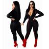 Workout Active Wear Solid Color Rompers Womens Jumpsuit Sporty Long Sleeve Fitness Clubwear Zipper Party Jumpsuits Bodycon