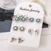 Retro Dragonfly Leaf Earrings Set: 5 Pairs with Micro-Inlaid Turquoise