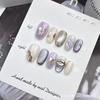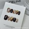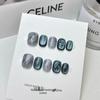 Lapis Lazuli Hand-Painted Translucent Cat Eye Gel Nails - Reusable & Removable