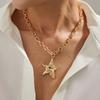 Women's 18K Gold Plated Stainless Steel Star Shape Hollow Pendant Necklace Waterproof Non-Tarnish Jewelry Accessory