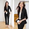 This sophisticated women's slim-fit business suit set is designed for interviews and work environments, offering both style and professionalism. Crafted from high-quality polyester, the suit provides a comfortable and flattering fit. The modern cut enhances your silhouette, ensuring you present a polished appearance. Ideal for creating a powerful first impression, this suit set combines elegance and functionality, making it an essential addition to your professional wardrobe.