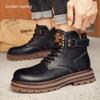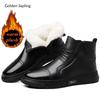 Golden Sapling British Style Warm Men's Boots Classics Black Leather Male Ankle Botas Outdoor Rouns Toe Thicken Plush Shoes Man