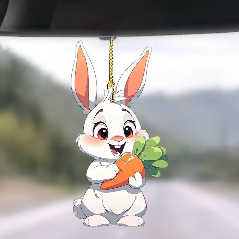 Car Acrylic Delightful Accessories Cute Easter Bunny And Carrot Hangings For Cars
