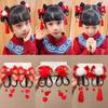 2ks Střapec novoroční pokrývky hlavy Čínský styl Červená paruka cop Vlásenka Tradiční dětská spona do vlasů