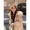 Big fur collar thickened warm versatile horn buckle cotton jacket women's winter loose short hooded tooling pie overcome