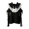 Lily Brown Openwork Frill Knit Top LWNT204148 Size F Women's Black, (Free Size)