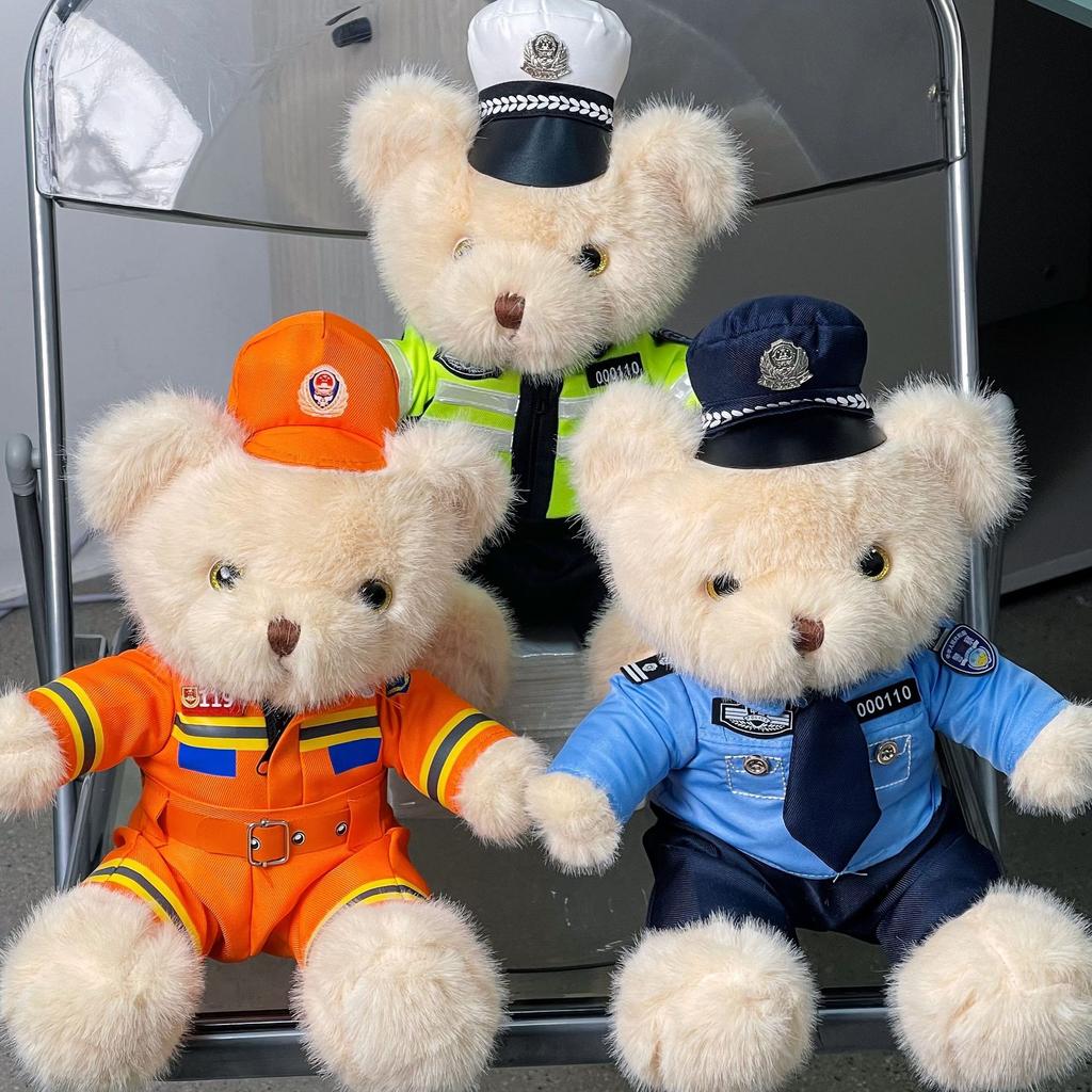 Police Fluffy Bear Iron Cavalry Plush Toy Traffic Police Bear Doll Fire Police Bear Police Officer Bear Police Officer