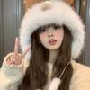 Korean White Plush Knitted Hat for Women In Autumn and Winter Fashionable Warm Imitation Fur Ear Protecting Hat