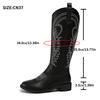 Fashion Aphixta Embroider Mid-Calf Modern Boots 3.5cm Square Heel Totem Design Long Boot Shoes Round Toe Black Big Size 43 Western Boot