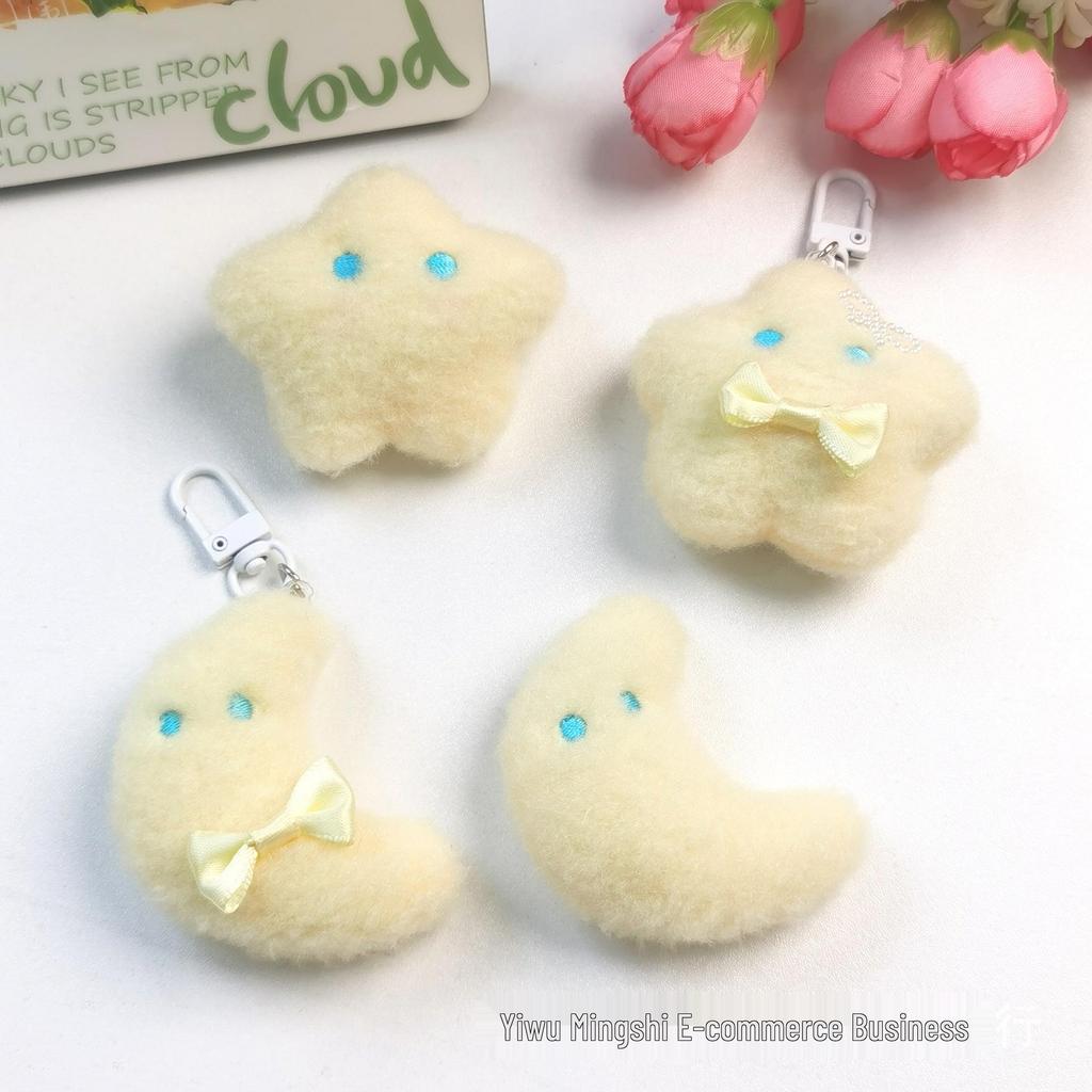 Cute Plush Star & Moon Keychain: Soft Blush Star Brooch & Adorable Hair or Clothing Accessory
