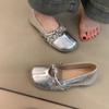 Fashion Silver round Head Flower Soft Bottom Flat Shoes Women's Slip-On Ballet Flats Retro Style Summer Season Solid Color Pattern