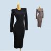French Style Puff Sleeves V Neck Rear Split Thread Knitting Dress Fashion Wind Slim Fit Slimming Long Sleeves Base Dress