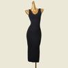 American Brand Double V Neck Knitting Long Dress Fashion Wind Black Basic Style Sunken Stripe Silm Base Export Dress