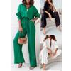 Stretch Polo Collar Single-Breasted Wide-Leg Long-Sleeve Shirt