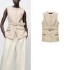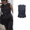 Fall and Winter New Women's Clothing Fashion Style Belt Minimalist Sleeveless O-neck Short Vest Jacket 9300525
