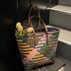 Summer fresh mixed color handwoven bag plastic woven shoulder bag seaside vacation large capacity bag beach bag