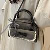 Pu Leather Lace Ribbons Boston Bag Korean Commute Handbag Niche Bow Crossbody Bag Purse