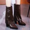 Elegant Heeled Pointed Toe Leather Ladies Mid Calf Shoes Autumn Winter 2025 Novelty Comfortable Fashion Women's Half High Boots