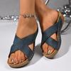 Women's Slope Heel Thick-soled Slippers Women's Round-toed Casual One-legged Shoes Cross-strap Shoes Slope Heel Flip-flops
