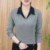 Γυναικείο φθινοπωρινό και χειμωνιάτικο πουλόβερ ψεύτικο πουλόβερ δύο τεμαχίων με μακρυμάνικο πουλόβερ με λαιμόκοψη σε σχήμα V Πλεκτό πουλόβερ στο κάτω μέρος