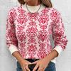 Φθινοπωρινό Πλεκτό Χειμωνιάτικο Φλοράλ Ζακάρ Ροζ Πουλόβερ με μισό ψηλό λαιμό