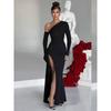 Women's Autumn Fashion Personality Oblique Shoulder Metal Decoration Flared Sleeve Top High Waist Skirt Set