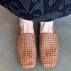 Sheepskin version of the new woven hollow bag head half slippers women's summer wear flat bottom square head fashion lazy cool slippers