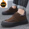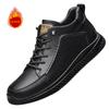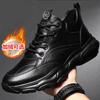 Autumn Winter MEN'S black PU leather plush warm outdoor waterproof cotton shoes chunky male walking hiking trekking sneaker