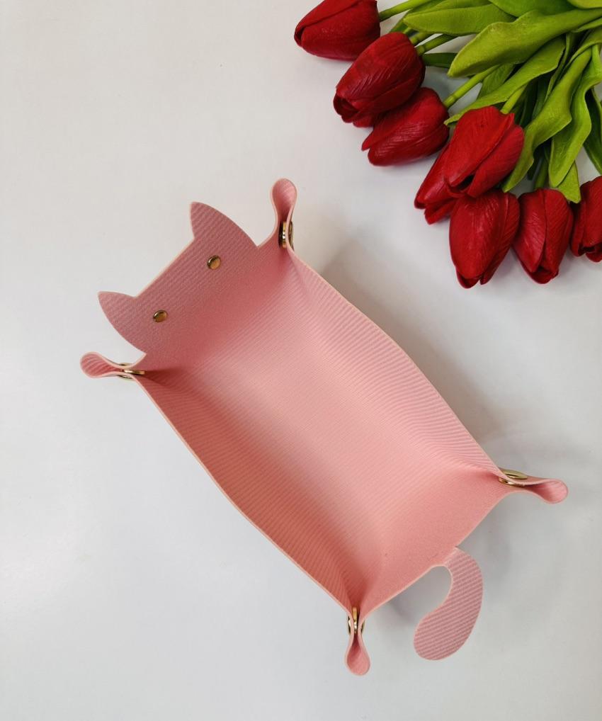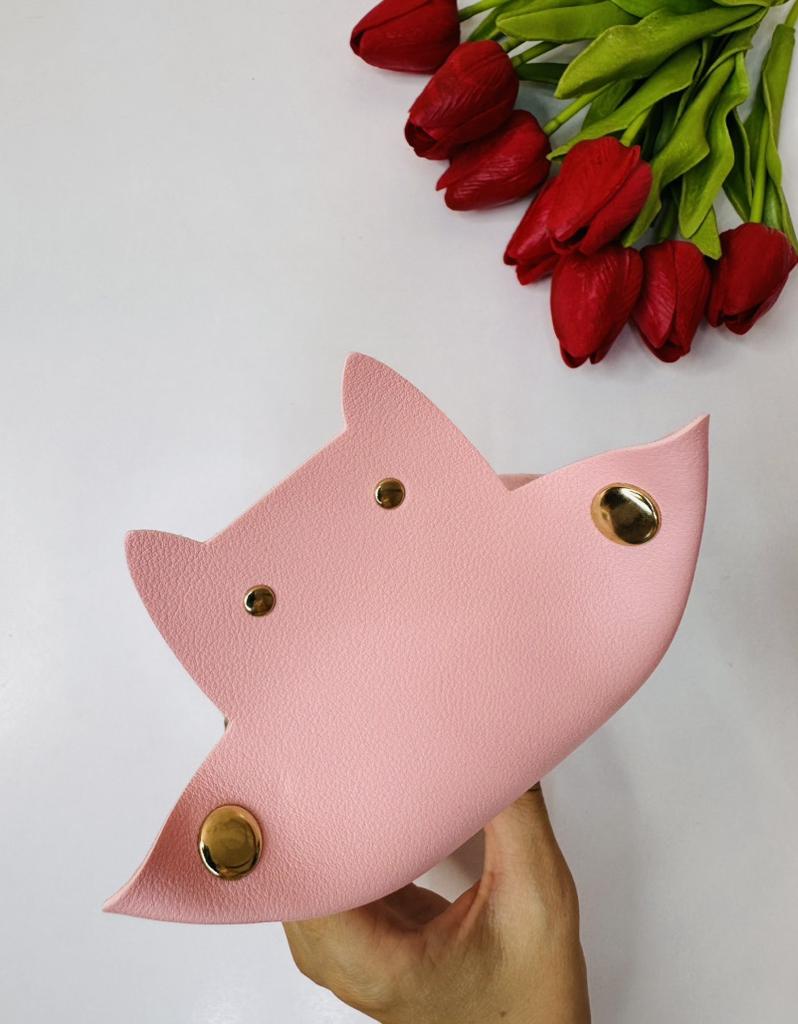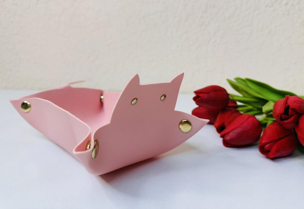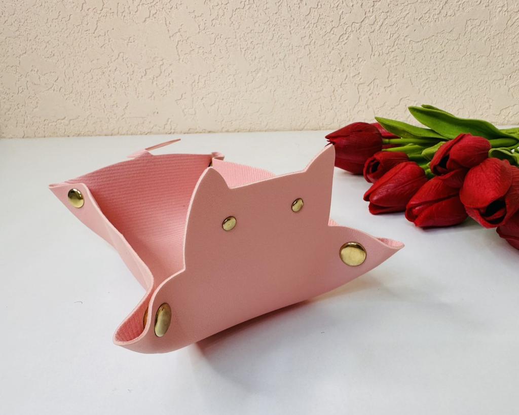 Cat shaped organizer tray This designer tray is a love ❤️ Made of high quality faux leather material, this tray is not only durable but also waterproof. With its large capacity, you can store keys, headphones, tissues and other miscellaneous items, keeping your countertop tidy and organized.. Arrived in Italy in just 14 days perfectly packaged. The metal snap buckle makes it easy to assemble and you can press it to store it conveniently when not in use.. I am completely satisfied with my purchase and I recommend it. Thank you Lord💕💕💕💕💕