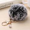 Cute Fluffy Fur Pompom Keychain Soft Faux Rabbit Fur Ball KeyChain Car KeyRing Women Charm Bag Pearl Pompom Pendant Jewelry