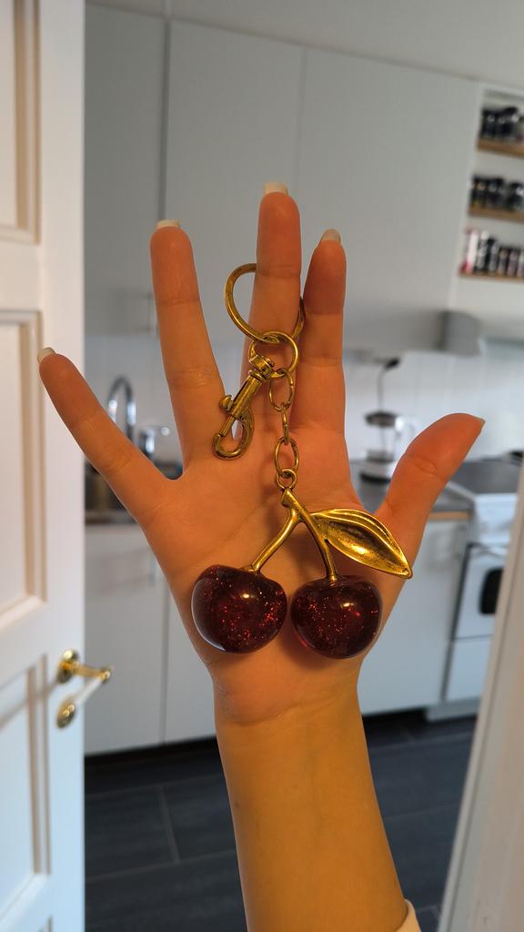 Elevate your accessories with this dazzling cherry charm, crafted from vibrant glittery resin that is sure to draw eyes and compliments wherever you go.