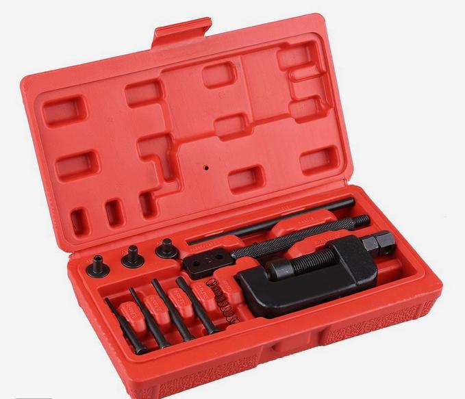 13Pcs Riveting Repair Tool Kit with Red Case Motorcycle Bike Heavy Duty Splitter Link Riveter Set Cam Drive Chain Breaker
