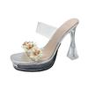 Xia's New Large-size Transparent Slippers Crystal Thick High Heels Fashionable Open-toed One-word Drag Girl