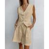 Suit European and American Design Cotton and Linen Suit Vest Set Women Clothes Summer Leisure Sleeveless Vest Shorts Two-piece Set