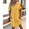 Western Style Fashion Casual Loose Short Sleeve Dress Single Breasted Short Dress Single Brewed Dress