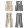 Fashion Style 2024 New Fall Women's Clothing Commuter's All-Matching Slim Looking Sleeveless Cotton Linen Vest Mid Waist Pants Suit